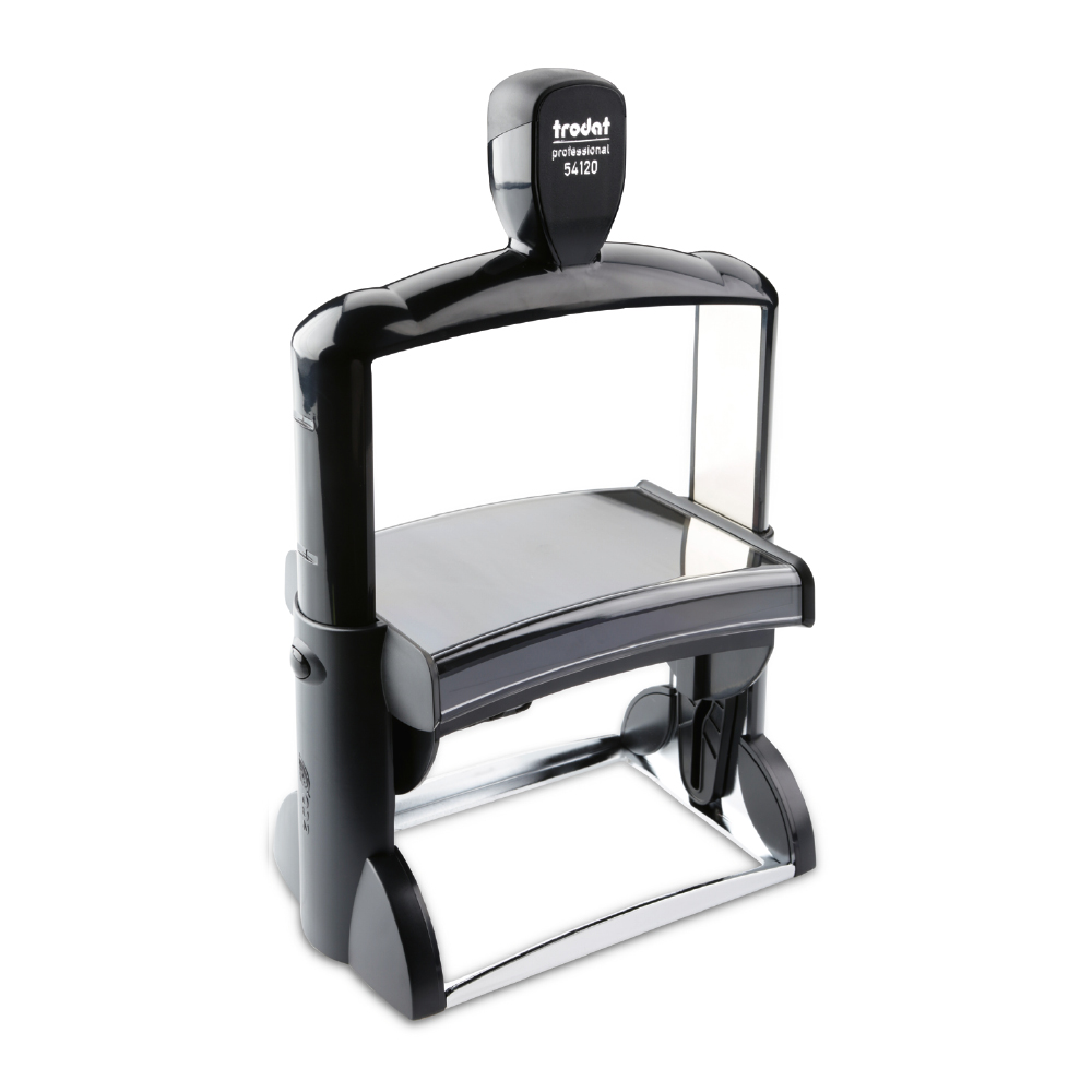 Der robuste Stahlkern dieses Datumsstempels garantiert lange Lebensdauer und höchste Stabilität. Patentierte High-Performance Datumsbänder sowie die Bandabdeckung garantieren eine saubere Handhabung bei der Datumsverstellung. Das Modell Trodat Professional Dater 54120 hat eine große Abdruckfläche von 116x70mm und eignet sich für einen Datumsabdruck mit je fünf Zeilen ober- und unterhalb des Datumsfeldes. Er ist in 4 unterschiedlichen Abdruckfarben erhältlich, das Datumsband reicht über 12 Jahre.